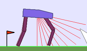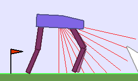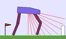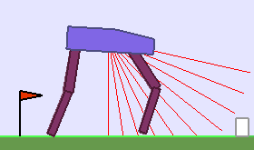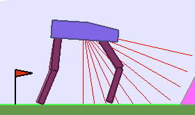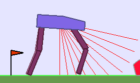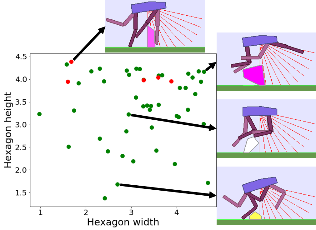 | A 2D parametric environment producing tracks paved with stumps varying by their height and spacing. | A more challenging 12D variation whose parameters are used to generate arbitrary hexagons. |